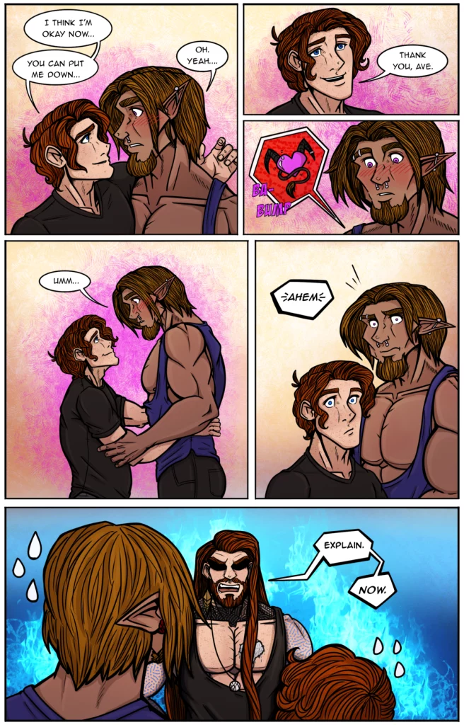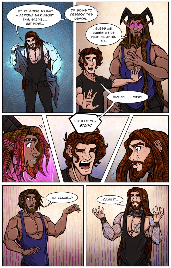 Michael about to breakthrough the door just as Atrevius is about to help Ave have a personal breakthrough.