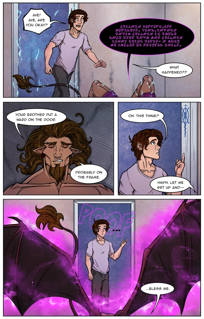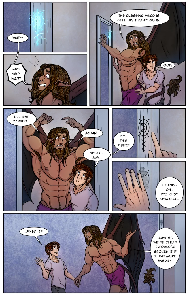 The boys (like the author) forgot that ward is still on the door — don’t worry! This problem will be solved in the next page!